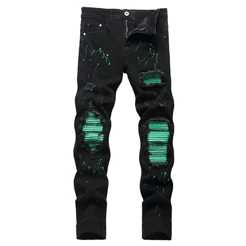 OIIIO Men's Patch Ripped Stretch Regular Fit Jean (36, 6666 Black)