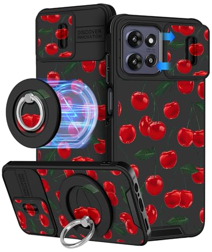 Buleens for Moto G Power 2025 Case - for Motorola Moto G Play 2025 Case Cute Designed with Ring Stand & Camera Cover Women Girls Aesthetic Girly Kawaii Cherry Phone Cover Compatible with Magsafe