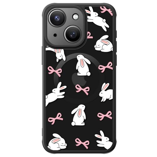 FUNMIKO Case for iPhone 14 - Wireless Charging & Military-Grade Protection - Wildflower Design for Women Girls, Non-Slip Matte Cover Shock-Absorbing Corners - Adorable Rabbit and Bows