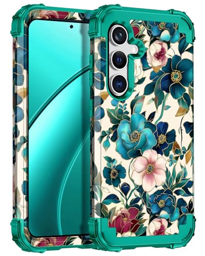 Hekodonk for Galaxy S24 Case,Three Layer Heavy Duty Shockproof Protection Hard Plastic+Soft Silicone Full Body Drop Protective Case for Samsung Galaxy S24,All Green Flower
