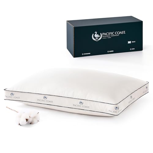 Pacific Coast Goose Firm Bed Pillows of Standard Size, 100% Organic Cotton Cover, Gusseted Design for Sleeping, Feather and Down Pillows of Hotel Collection