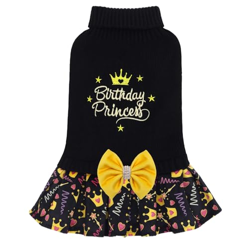 CuteBone Core Spun Birthday Dog Sweater Dress for Small Dogs Girl, Turtleneck Embroidery Medium Dog Sweater with Leash Hole, Dog Coat for Chihuahua Yorkie Teacup DS105XS