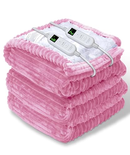 YONJION Electric Heated Blanket Throw, Heating Blanket Throw with 4 Timer Settings & 6 Heat Settings, Best Winter Gifts for Men and Women, White Elephant Gifts for Adults (84x90 Inch, Pink)