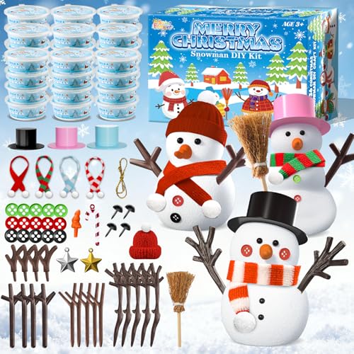 SpringFlower 36 Pack Christmas Crafts for Kids, DIY Snowman Kit, Build a Snowman Kit, Air Dry Modeling Clay Xmas Game Activities, Christmas Stocking Stuffers Holiday Party Favors Supplies