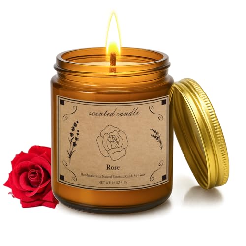 Scented Candles Gift, 16oz Large Jar Scented Candle – Rose Soy Wax Candle with 100 Hour Burn Time, Long Lasting Aromatherapy Candle for Romantic Home Fragrance, Bedroom Décor & Gift for Her/Him