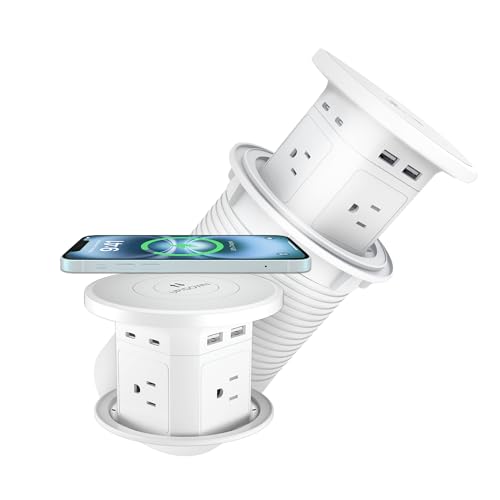 9-in-1 Pop-Up Outlet with Wireless Charging – 4 AC & 4 USB Ports, 2500W Overload Protection, 100-240V Global Voltage, 4-1/8" Cutout – Hidden Countertop Power Hub for Kitchen, Office, etc.(2-Pack)