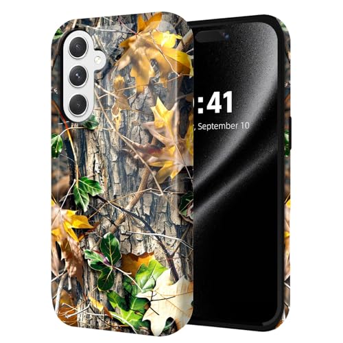 ETLKJVBL for Samsung Galaxy A15 5G Phone Case, Hybrid 2-Layer Hard Shell with Shockproof Silicone, Camouflage Leaves Dual-Layer Protective Case for Samsung Galaxy A15 5G