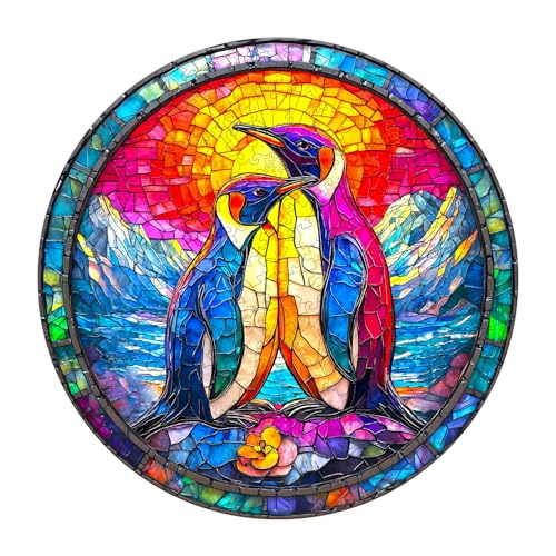 Wooden Puzzles for Adults - Colorful Couple Penguins Wooden Jigsaw Puzzle, Unique Animal Shaped Wood Puzzles Adult, Christmas Birthday Gifts for Friends/Family, Home Decor 11.4 * 11.4in 200pcs