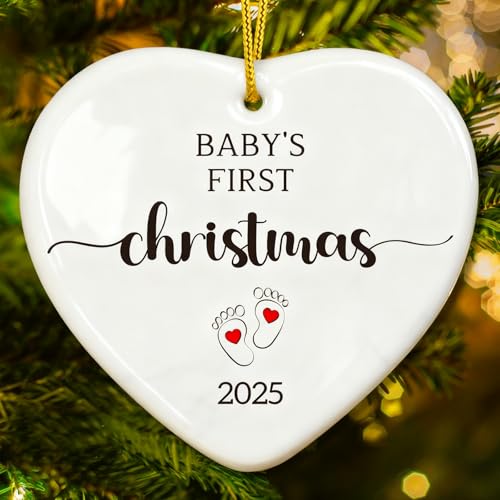 SICOHOME Baby's First Christmas Ornament 2025 - Ceramic Heart Babies First Christmas Ornament 2025 Girl Boy Newborn New Baby Christmas Tree Decorations, Gifts from Parents Grandparents Aunt