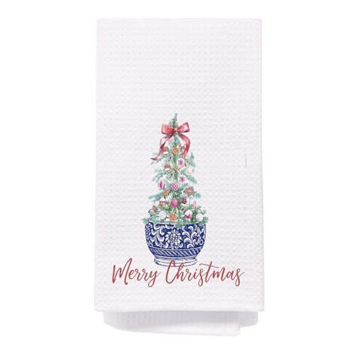 SPBL&L Chinoiserie Christmas Kitchen & Bath Towels, Red Bow Tree Hand Towels, Merry Christmas Decor, 16x24 Inch