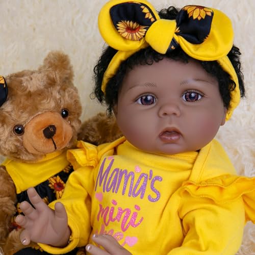 EKOKIZ Realistic Baby Doll 22-Inch Real Life Reborn Baby Dolls Soft Cloth Body American African Baby Girl Lifelike Baby Dolls with Clothes and Toys Accessories Gift Set for Kids 3+