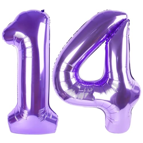 14 Balloon Number Purple Number Ballon for 14th Birthday Decorations, 40 Inch Big Balloons for 14 41 Anniversaries Celebration Graduation Wedding