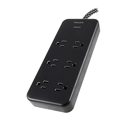 Philips 6-Outlet Surge Protector, 8 Ft, Braided Cord, 1080 Joules, Adapter-Spaced, Black, SPC6066BB/37