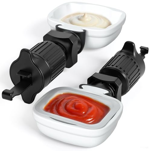 Snack & Go Dip Clip, Secure Car Sauce Holder with Adjustable Vent Hook & Rotatable Swivel Tray for Mess-Free Ketchup and Dipping Sauces (2-Pack, White)