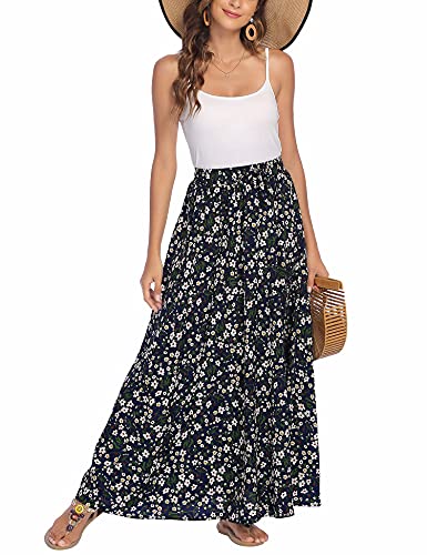 Bluetime Maxi Dress for Women Casual Chiffon Flower Print Beach High Waist Skirts with Drawstring (S, Floral11)