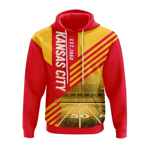 CustomFit Men's Football Hoodie Long Sleeve Pullover Sweatshirt Game Day Apparel City Team Fan Hoodies Gift Red Yellow
