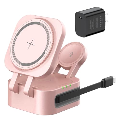Wireless Charging, 3 in 1 Foldable Charger for iPhone 16/15/14/13/12 Series, Pink