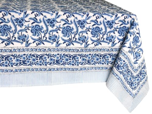 ATOSII Midnight Bloom 100% Cotton Spring Summer Tablecloth, Hand Block Print Rectangle Table Cover for Kitchen Dining Linen I Parties, Outdoors, Wedding, Easter I 72 X 120 Inches I 10 Seater