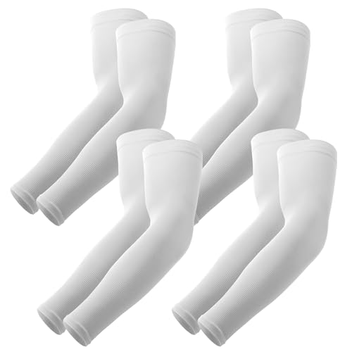 YESLIFE 4 Pairs UV Sun Protection Arm Sleeves for Men & Women, UPF 50 Sports Sleeve, Sleeves to Cover Arms (4 White