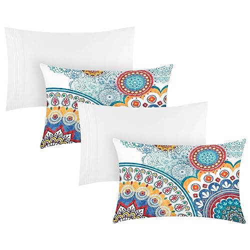 YIYEA King Size Pillow Cases Set of 4, Ultra Soft 1800TC Hotel Quality Double Brushed Microfiber Embroidered Pillowcases and Boho Pillow Covers, Envelope Closure, Fade Resistant (20"x36")