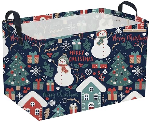 Sanjiaofen Rectangular Christmas Baskets,Snowman Basket Empty,Waterproof PE Coating Cute Bins for Kids with Handles,Gifts Baskets,Books Bin. (Blue Snowman)