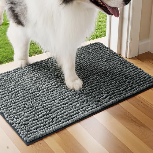 Bedsure Dog Door Mat for Muddy Paws, High-Low Absorbent Chenille Indoor Entrance Mud Dirt Trapper Soak-Stopper, Machine Washable Non-Slip Entryway Rug for Pets, 24"x16" Grey