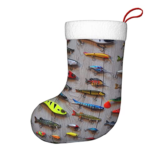 ShiHaiYunBai The Best Bait for Fishing Christmas Stocking, 17.7 inches Long, Plush Christmas Stocking Lovely Home Holiday Mantel Ornament Decor, One Size