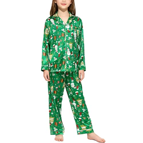 Weixinbuy Pajama Set for Kid Baby Girl Boy Button-up Silk Pajama Sleepwear Nightwear Loungewear Clothes Set Gifts for Kids