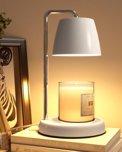 YIGEYIGE Candle Warmer Lamp with Timer and Dimmer - Electric Candle Lamp Warmer for Jar Candles - Ideal Home Decor Gift for Women, Daughter, and Mom - Includes 2 Bulbs (White & Gold)