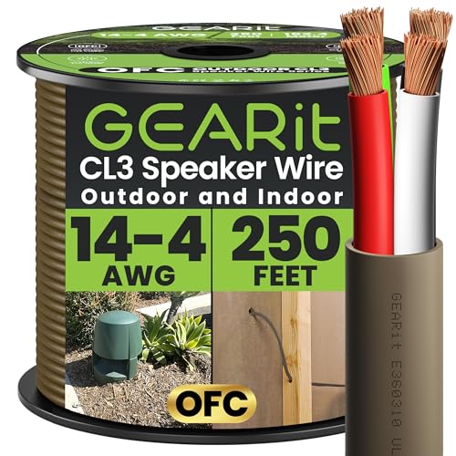GEARit Outdoor Speaker Wire CL3 Rated, 14 Gauge Speaker Wire, Speaker Cable 250 ft for Outdoor Speakers, Patio, Garden, Backyard Audio, Direct Burial in Ground/in Wall, OFC (Brown, 4-Conductors)