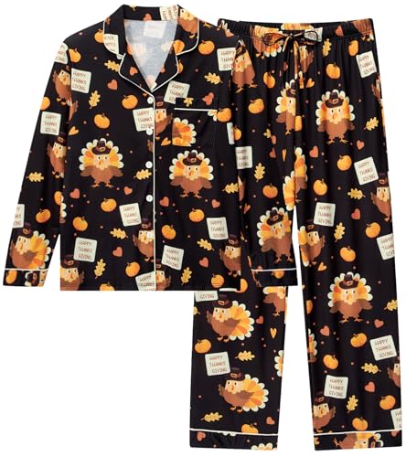 Lindanina Thanksgiving Family Couples Matching Men's Funny Turkey Pajamas Sets Punkin Soft Pjs Long Sleeve 2 Piece Shirt Sleepwear and Drawstring Pant Pyjama Loungewear Festival with Pocket XXL