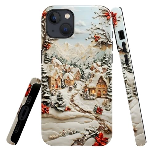 Case for iPhone 13,Snowy Winter Village Christmas Phone Case Slim Silicone Shockproof Cover for Girls Women(Glossy & Durable)
