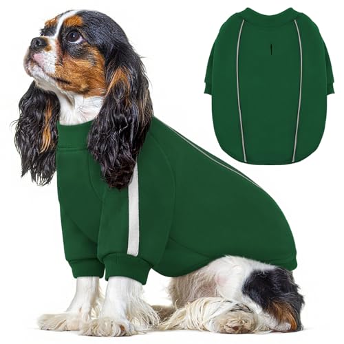 Queenmore XS Christmas Dog Sweater, Cozy Fleece Dog Sweatshirt, Warm Winter Fleece Jacket for Small, Medium & Large Dogs with Leash Hole/Reflective Stripes Green