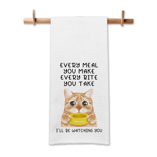 GOSJINNK Funny Cat Kitchen Towels, Every Meal You Make Every Bite You Take Dish Towels, Cat Mom Dishcloths for Kitchen Decor, Cute Housewarming Gifts for Women Hostess Housewife Sister Friend