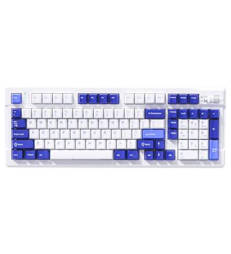 EWEADN X99 Wireless Mechanical Keyboard - 99 Keys, Three Mode Connectivity- BT5.0/2.4GHz/USB-C, Hot-Swappable PCB, Gasket Mount, 8000mAh Battery, PBT Double-Shot Keycaps,Blue and White, Linear