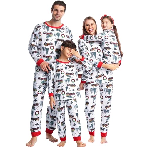 ENJOYNIGHT Matching Family Christmas Pajamas Set Soft Long Sleeve Xmas Sleepwear Print Pjs Sets(Medium, Women-G-Tree)