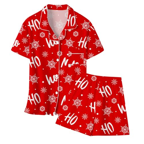 Umeyda Girls Modal Pajamas Set, 2 Pieces Button Down Nightwear Sleepwear Pjs Set for Kids, Ho Red Snowflake, 9-10 Years = Tag 150