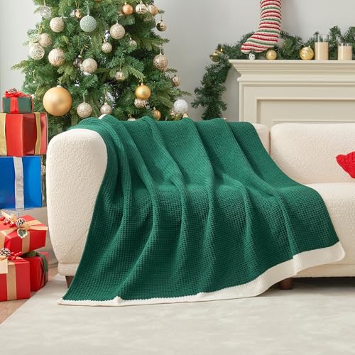 Amélie Home Christmas Waffle Throw Blanket for Couch, Soft Cozy Chenille Knit Blanket Warm Xmas Decorative Gifts Throw for Sofa, 50"x60", Holly Green