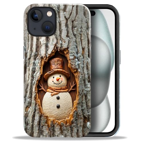 Case for iPhone 14, Glossy Case Cover for Women Girls,Drop Scratch Protective-Rustic Winter Christmas Snowman Tree