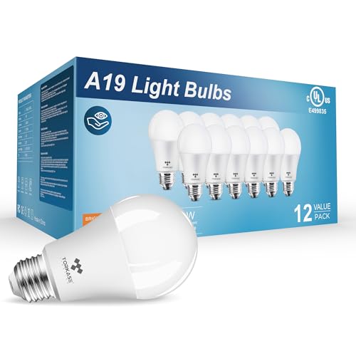 TORKASE LED Bulbs 12-Pack, 100W Replacement A19 Light Bulb, 13W 1500LM Extra Bright Lightbulbs, UL Listed 30000 Hours Lifespan, E26 Medium Base, 5000-Kelvin Daylight White, Flicker Free & Eye-Friendly