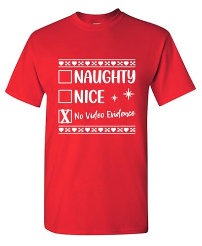 Naughty, Nice, No Video Evidence Novelty Xmas Graphic T Shirt S Red1