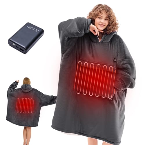 CYMULA Heated Hoodie Blanket, Wearable Heated Blanket Hoodie Oversized Portable Cordless Heating Wearable Blankets, 3 Heat Settings Electric Hooded Gifts for Women Men with Power Bank, Grey