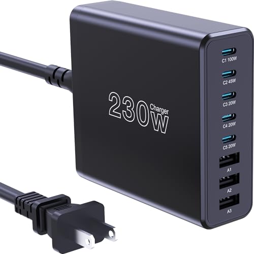 230W USB C Charging Station, Graaci Compact 8 Ports GaN Desktop Charger, PD 100W PPS 45W Super Fast Charger, Laptop Wall Charger Block for MacBook Pro, iPad, iPhone 15/14, Galaxy S24/S23, and More