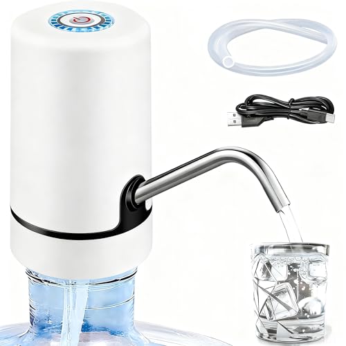 Water Dispenser Pump- 2-6 Gallon USB Rechargeable Portable, Electric Water Pump for Water Jugs with Auto Stop and Silicone Caps Ideal for Home Office Camping and Travel(White)