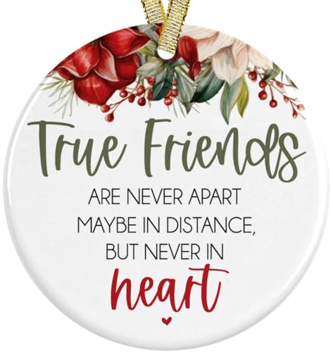 True Friends are Never Apart, Maybe in Distance But Never in Heart 2025 Friendship Present Idea Ceramic Round 3" Ornament with Metallic Gold Ribbon Box