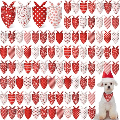 Chunful 100 Pieces Christmas Dog Bandanas Bulk Red and White Xmas Bandanas for Dogs Triangle Scarf Bib Kerchief Set for Small Medium Large Doggie Christmas Costume Decor(25.6 x 17.7 x 17.7)