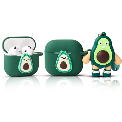 Silicone Case for AirPods 4 Earbuds (2024), XMBYGY Charging Shockproof Protective Headphones Cover with Cartoon Doll Anti-Lost Lanyard for Man Woman Teen (Avocado)