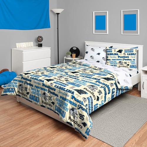 FOCO Carolina Panthers NFL Retro Bed in a Bag Comforter Bedding 5 Piece Full Set