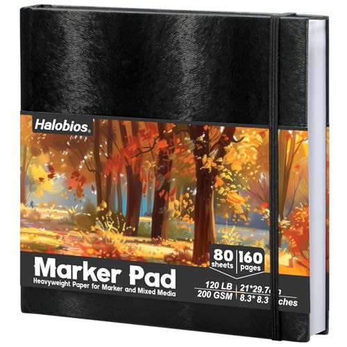 Halobios Square Sketchbook for Drawing, 120 lb/200 GSM Mixed Media Sketchbook, 80 Sheets/160 Pages Portable Marker Drawing Paper Sketch Book for Alcohol Markers, Artists, Beginners(8.3”x8.3”)