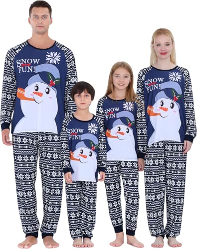 YEAXLUD Family Christmas Pajamas Matching Sets for Women Couples Mens Ladies Adult Sleepwear Xmas Pjs Cute Pijamas Print Shirt and Plaid Pajama Pant Jammies(Big Snowman Fun Set-Men,M)